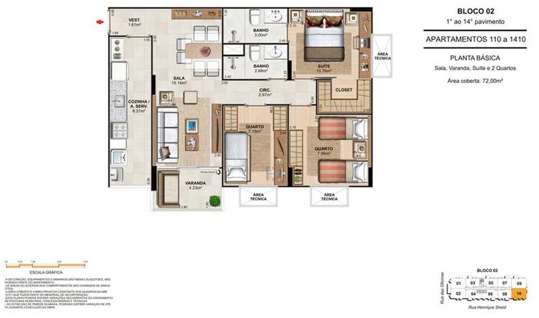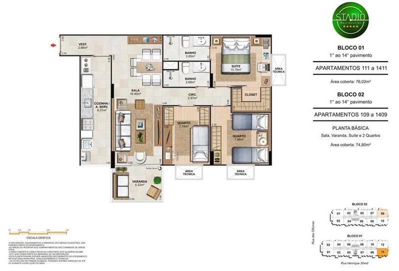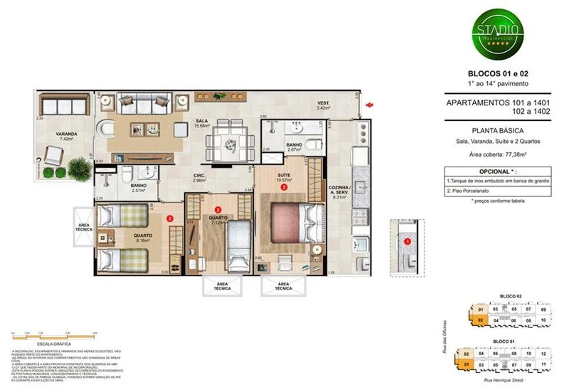 Apartamentos de 3 quartos - 72 a 77 m²